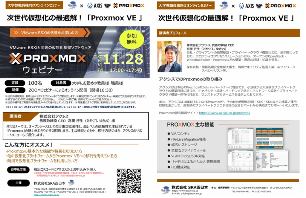 オンラインウェビナー「~VMwareと同等の仮想化基盤ソフトウェア~ 『Proxmox VE』のご紹介」を11月28日に開催
