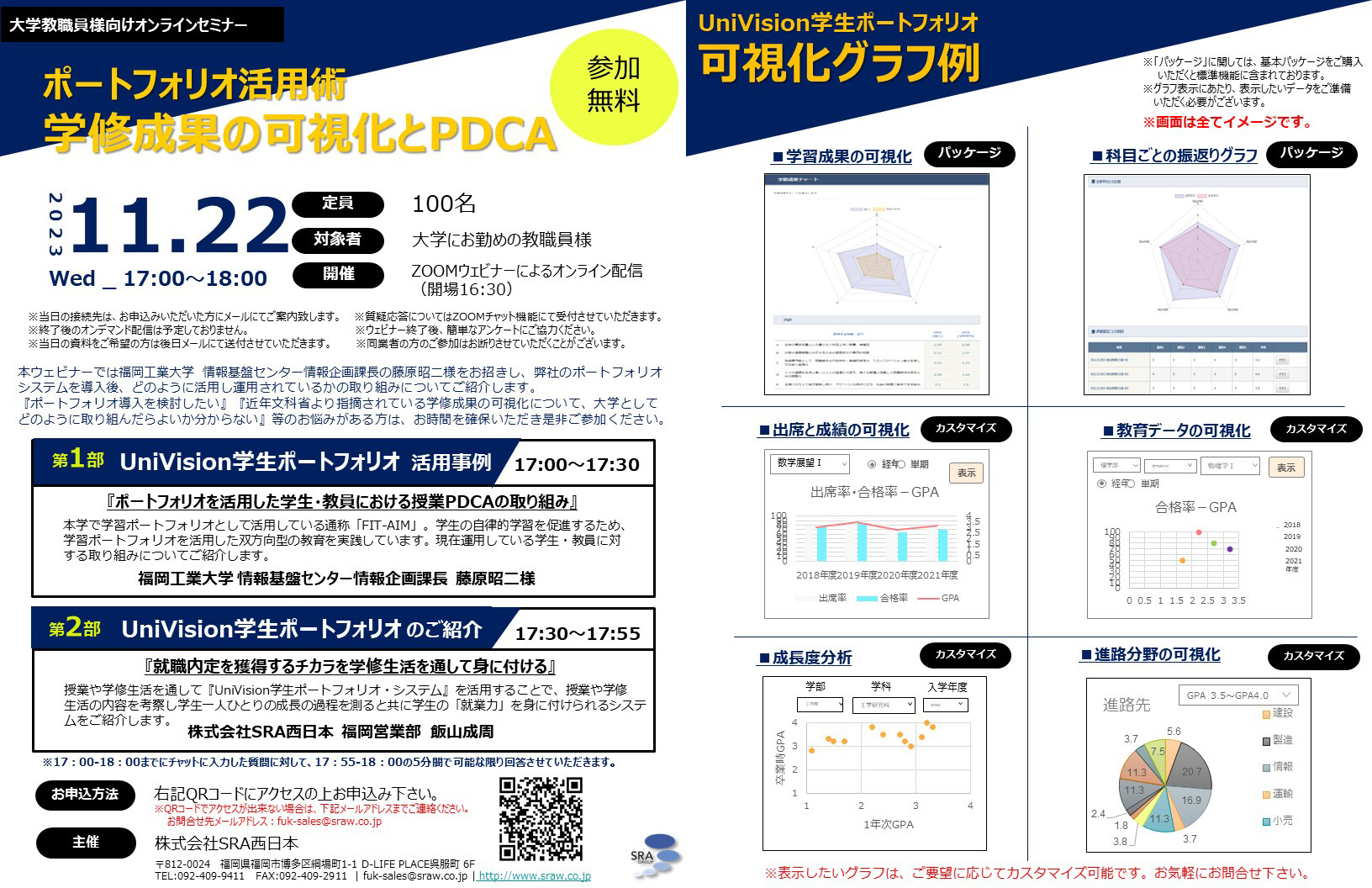 『ポートフォリオ導入を検討したい』『近年文科省より指摘されている学修成果の可視化について、大学としてどのように取り組んだらよいか分からない』等のお悩みがある方は、お時間を確保いただき是非ご参加ください。